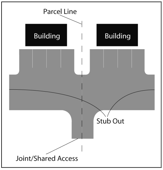 Joint Access (or Shared Access): A driveway connecting two or more contiguous sites to the public street system.
