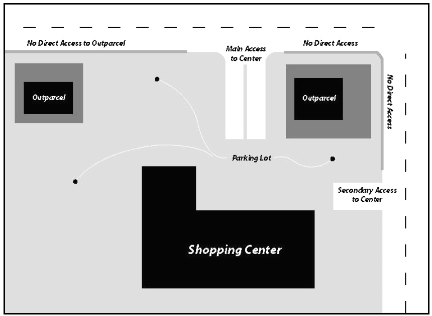 Outparcel: A lot identified on a site plan or subdivision plan that is owned by a party other than the primary owner of the parent property, and is intended to be developed separately from the parent property and/or is intended to be developed for a different use (e.g., a non-residential use vs. residential use).