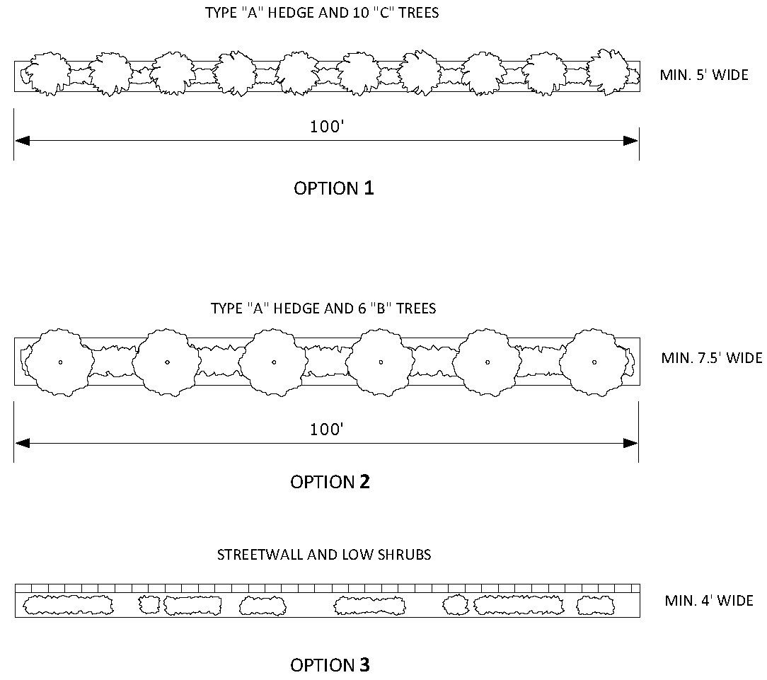 No structure, object, fence, wall, hedge, tree, shrub, earth berm, sign, bus bench, newsrack, or portions of same shall be placed, erected, constructed or maintained in such a manner as to materially obstruct the visibility of vehicle operators between the heights of 24 inches and 8½ feet above grade within the following described visibility triangles: