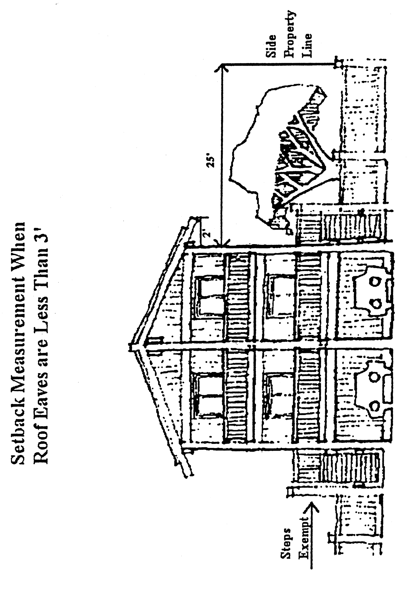 Side. An open, unoccupied space on the same lot as a building between the side line of the building (excluding steps and roof eaves less than three feet in width) and the side line of the lot, and extending from the front yard line to the rear yard line.