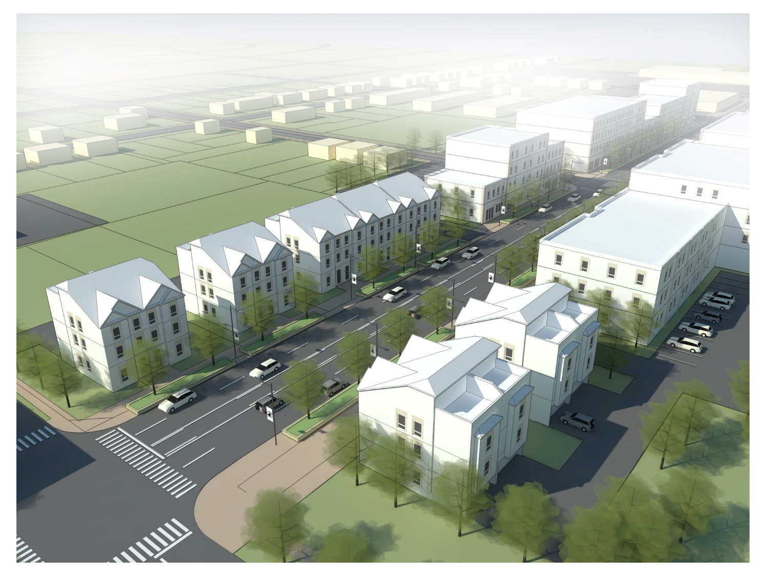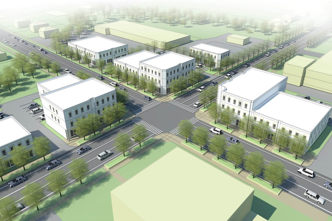 The purpose and intent of the MX-C Mixed Use Urban Corridor District is to provide for a vertical and horizontal mix of uses, typically with retail or commercial space on the ground floor and office or residential uses on upper floors. Development is characterized by buildings located closer to the street to promote walking and biking, and to create a character that is more "place" based than auto-oriented. However, in recognition of the arterial and suburban corridors that dominate the district frontages, this district is likely to contain some single-use buildings, so some variation in development is expected.