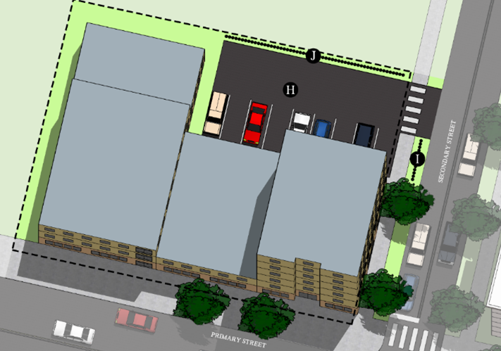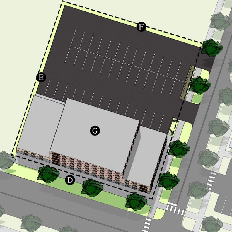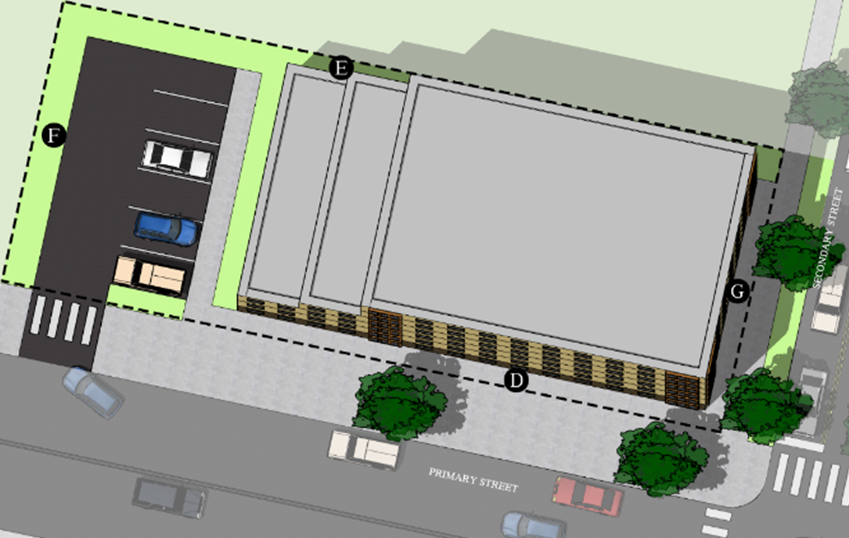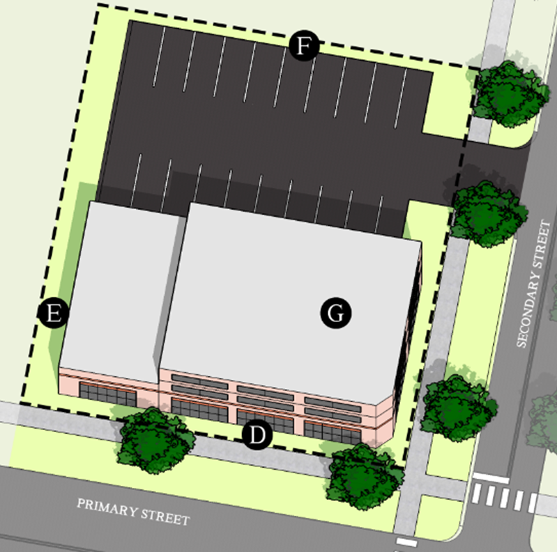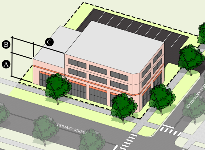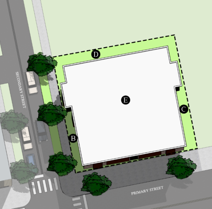 Build-to Line - up to the necessary distance to prevent building foundations from encroaching on the public right-of-way or established easements.