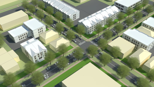 Provision for mixed-use. Proposals that include a mix of different but compatible use types within the same building, such as first-floor retail with offices or residential units on upper floors.