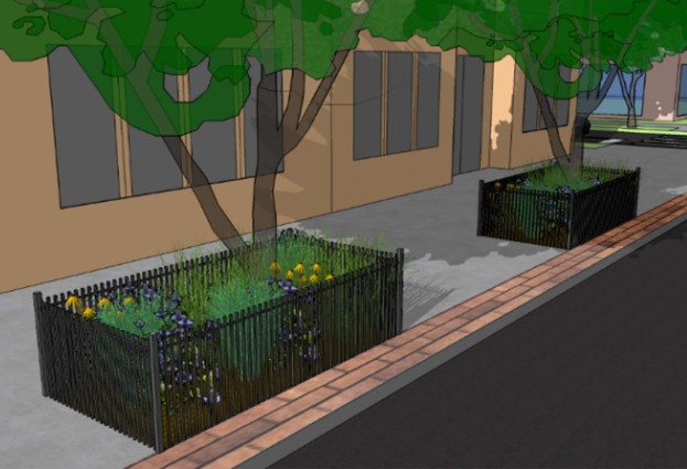 Rights-of-way yards abutting activity corridors shall incorporate decorative paving and streetscape elements if such elements exist on adjoining parcels. Plant material shall be located in tree wells, bioswales, and above ground planters and shall be approved by the Department of Public Service.