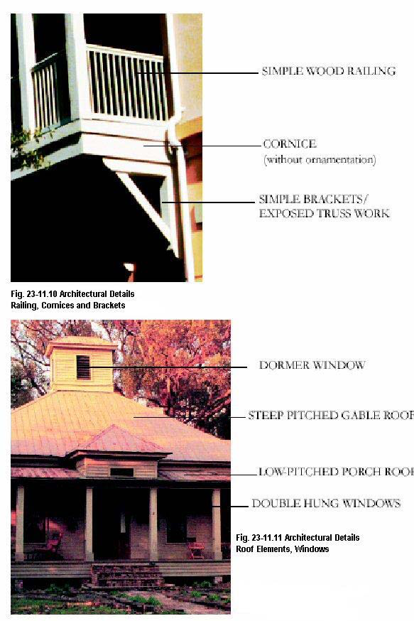 Decorative trusses and exposed rafter ends.