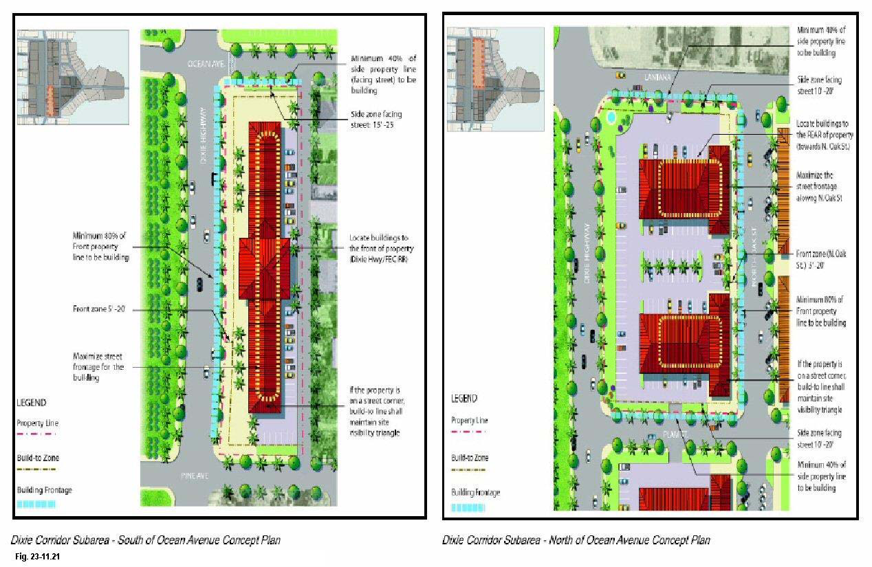 Dixie Highway Corridor mixed use sub-area (DC)—A mixed-use area on the east side of Dixie Highway from between Pine Street and Lantana Road, except the properties at the Ocean Avenue intersection;