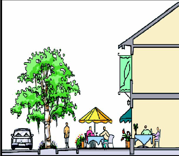 Take the "indoors" outdoors by spilling interior space (e.g. dining areas, small merchandise displays) onto the streetscape sidewalks and plazas.