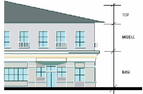 Building Walls. Buildings shall be designed to establish three bands of vertical composition as follows: