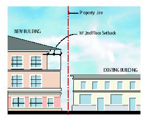 There shall be a minimum setback of ten feet (10') between the 2nd and 3rd floors of the building.