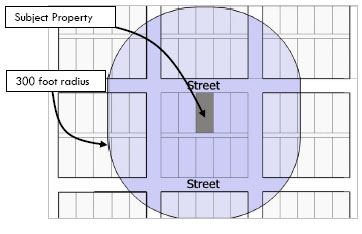 Figure 15.06-3: A majority of property owners abutting the subject public way and 300′ extensions