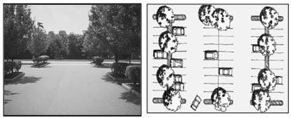 Interior landscaping of the park shall require at least one tree per space, existing or planted. Each tree shall be at least two-inch caliper in size at the time of planting.