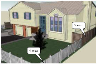 Type of Fencing. The developer shall erect a temporary plastic mesh fence or temporary chain link fence a minimum of four feet in height at the drip line around each tree or group of trees to prevent the placement of debris or fill within the drip line of any tree.