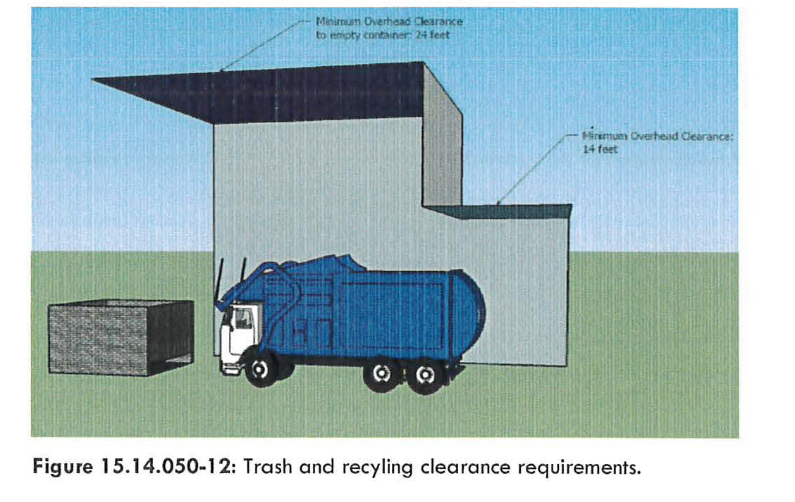 At least one sanitary garbage pickup area shall be located on the site. The garbage pickup area shall be screened from view in accordance with applicable city regulations.
