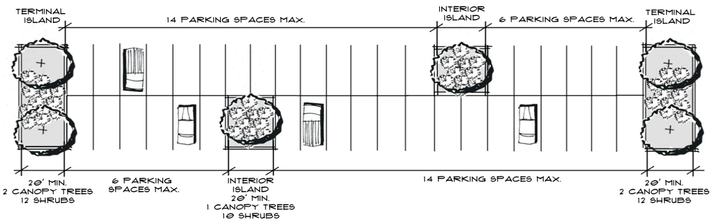 Objective - To separate potentially conflicting uses and to provide attractive boundaries, improving the City's image. Landscaping buffers are required along site perimeters to screen unsightly uses and structures, glare, noise, parking areas, and to reduce heat from parking lots.
