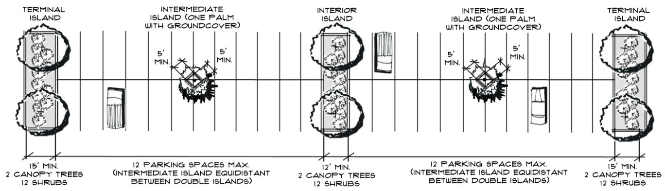 Overhead utility lines - For buffers that contain overhead utility lines, the requirement for canopy trees may be altered to low understory trees, or palms in clusters of three, at a ratio of 2.5 understory/palm trees for each required canopy tree (Bismarck, Canary Island, and Medjool palms, because of their large canopies, may be substituted for canopy trees in the above situations on a one-to-one ratio).