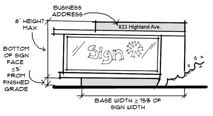 Signage shall be integrated with the design and materials of the building. The base of the sign may be made of the same materials as the building and may echo the style of the building facade.
