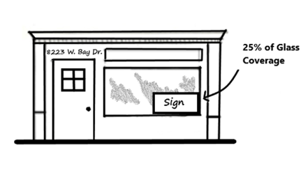 Window signs that meet the definition of governmental signs are allowed and have no size maximums.