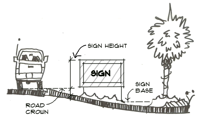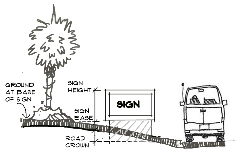 If the applicant for a proposed freestanding sign wishes to measure sign height from the crown of the adjacent roadway, a legal boundary survey must be submitted for the subject parcel depicting the roadway crown elevation;