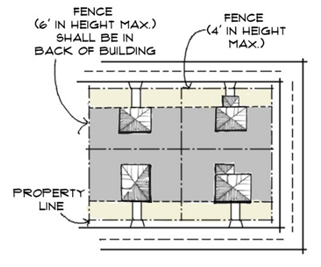 Placement - Portable storage containers must be placed in the side or rear yards and cannot be placed in the front yard, buffer area, within recorded easements, access roads or fire access lanes, or in areas marked for parking.
