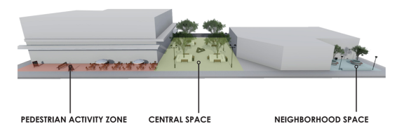 - Architectural features such as outdoor patios or plazas;