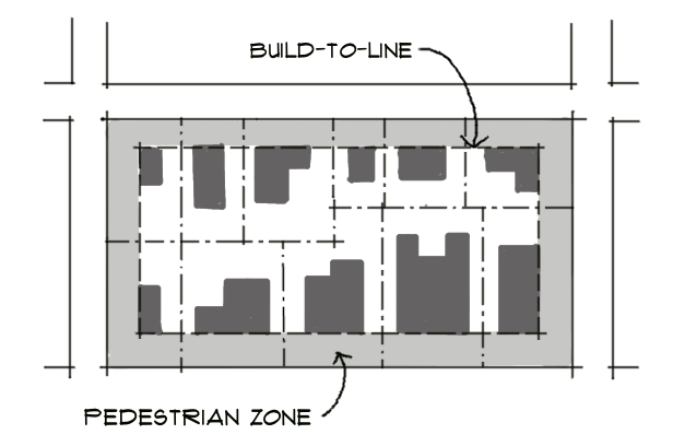 Ground floor of buildings are required to have an active use with building entrances that face the pedestrian realm.