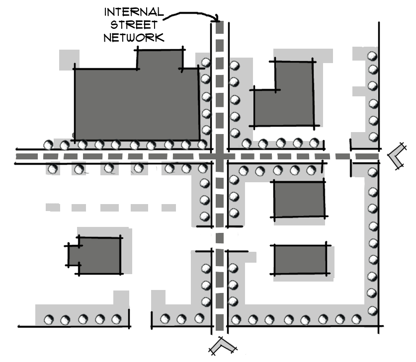 Internal street systems shall be required for sites containing multiple buildings