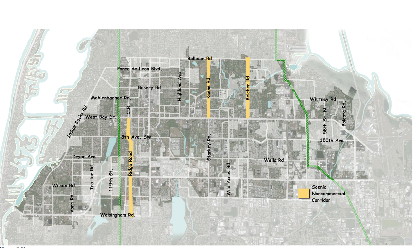 Intent and purpose - The intent and purpose of the Scenic Non-Commercial Corridor designation is to guide the preservation and enhancement of scenic qualities, to ensure the integrity of the Countywide Plan Map, and to maintain and enhance the traffic operation of these especially significant roadway corridors in Pinellas County. The principal objectives of Scenic Non-Commercial Corridor designations are: