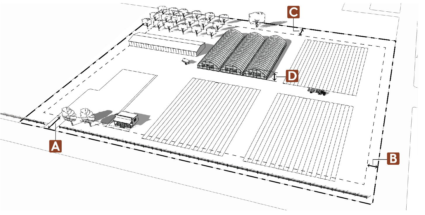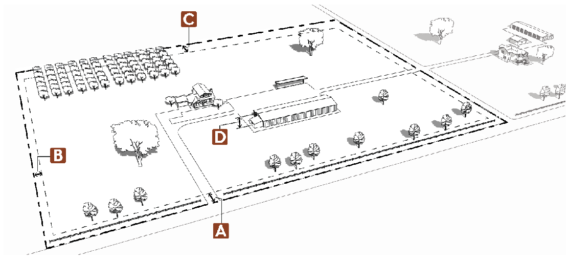 No new residential, commercial, or mixed-use lots, school facilities, hospitals, medical clinics, senior living or assisted living facilities, parks, or state licensed daycares may be platted within the following minimum setbacks: