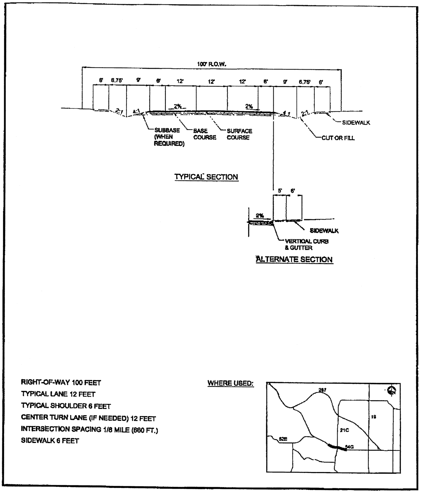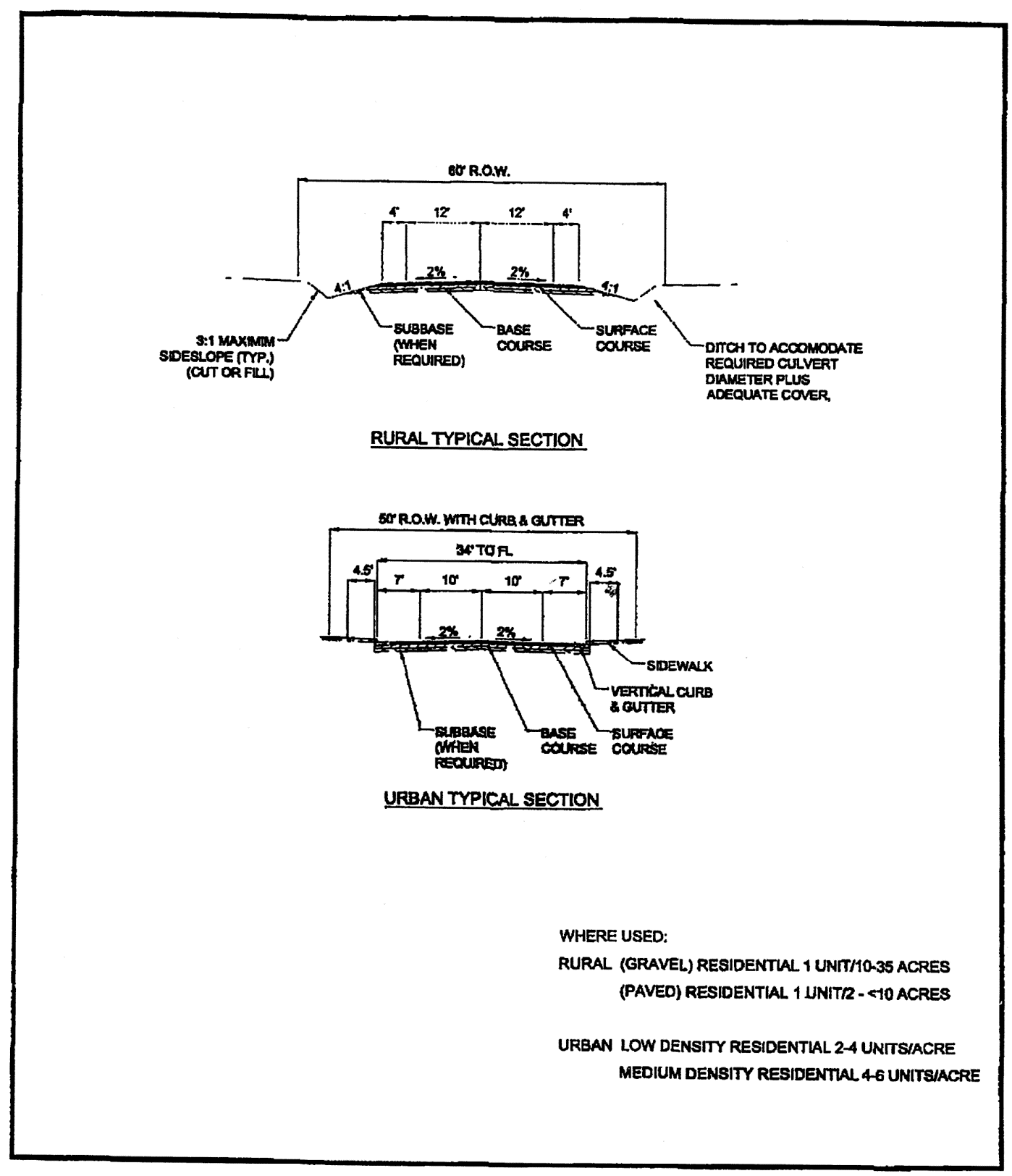 Street and road improvements shall be designed in accordance with the typical sections contained in the LaPorte Area Plan and detailed below: