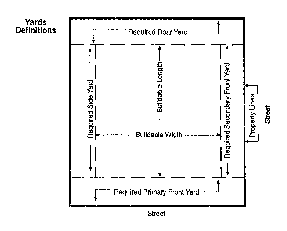 Buildable depth means the depth of the lot remaining to be built upon after the required front and required rear yards are provided.