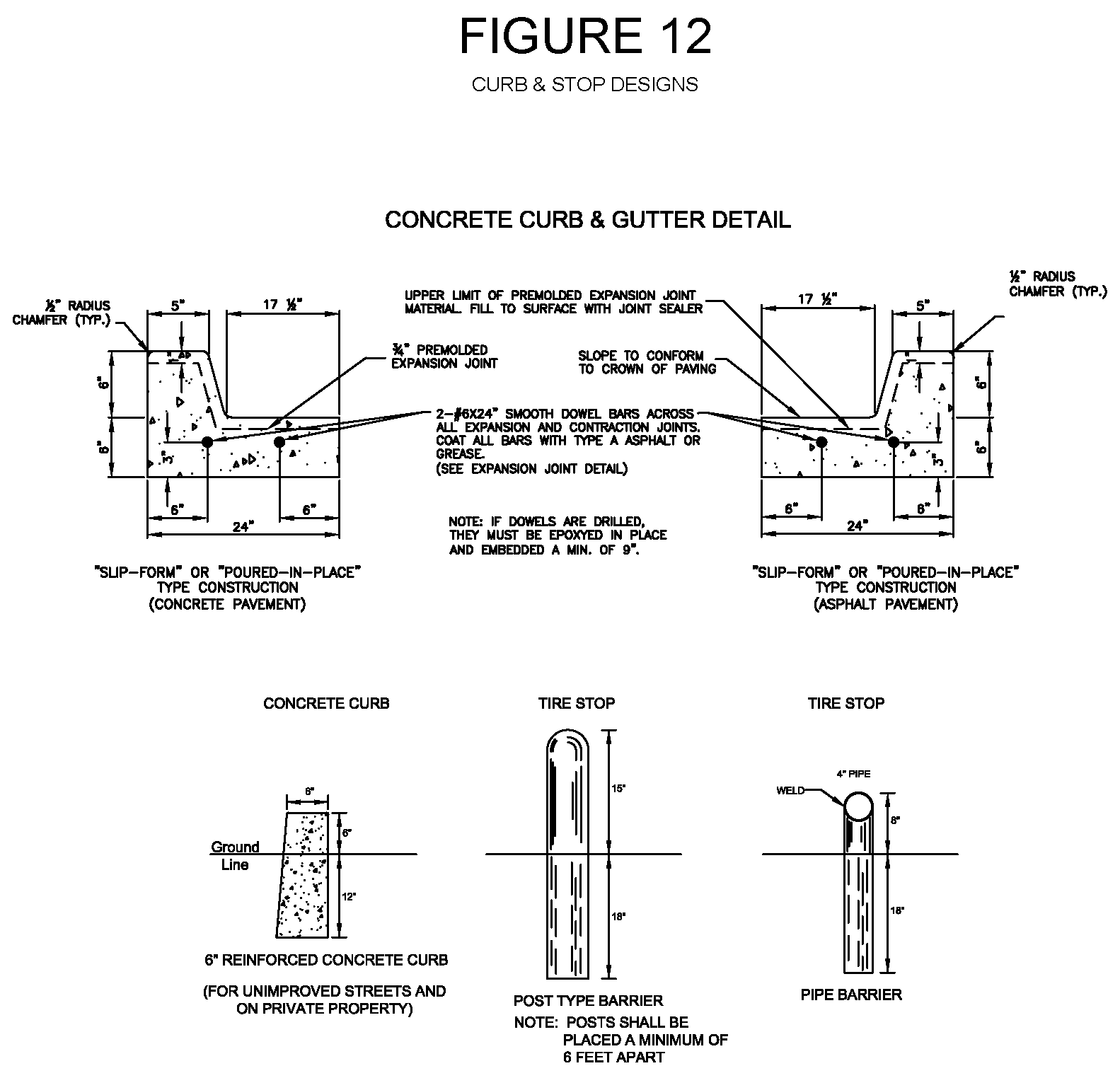 Standard pipe filled with concrete is not acceptable in pedestrian locations.
