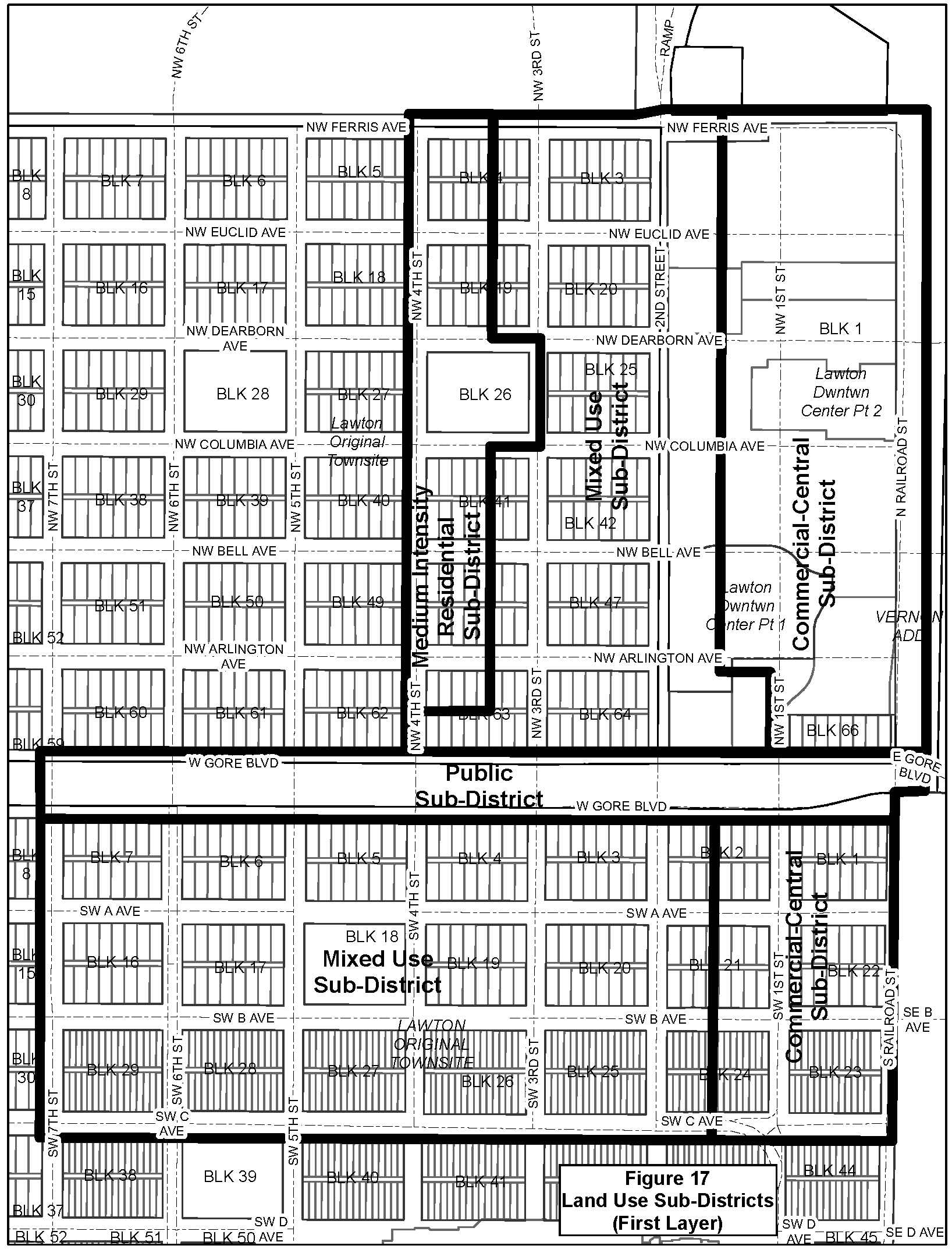 The boundaries of Downtown Lawton Overlay District and the sub-districts are shown on Figures 16, 17, and 18 of this chapter.