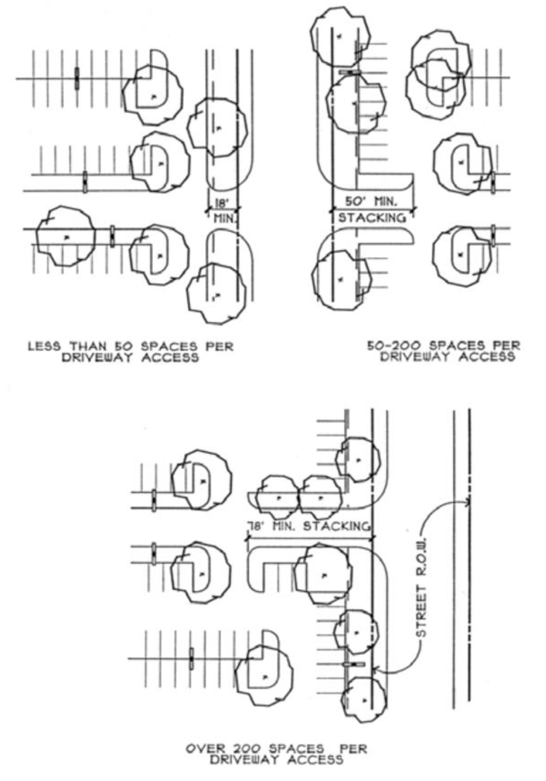 Parking screen fences. Fences shall be not less than three feet nor more than four feet measured from finish grade of the parking lot. Fences shall be set back a minimum of three feet and a maximum of six feet from the perimeter of any parking space, driveway, or any access aisle, as measured from the back of the curb. Fences shall not be placed in public rights-of-way or on top of any retaining walls. Fences shall be constructed of decorative block, brick, stone, or similar materials and finished on both the interior and exterior elevations.