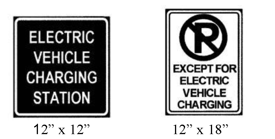 Installation of directional signage at the parking lot entrance and at appropriate decisions points be provided to guide motorist to the charging stations space(s). Directional arrow signs shall be no larger than 24 inches by nine inches.