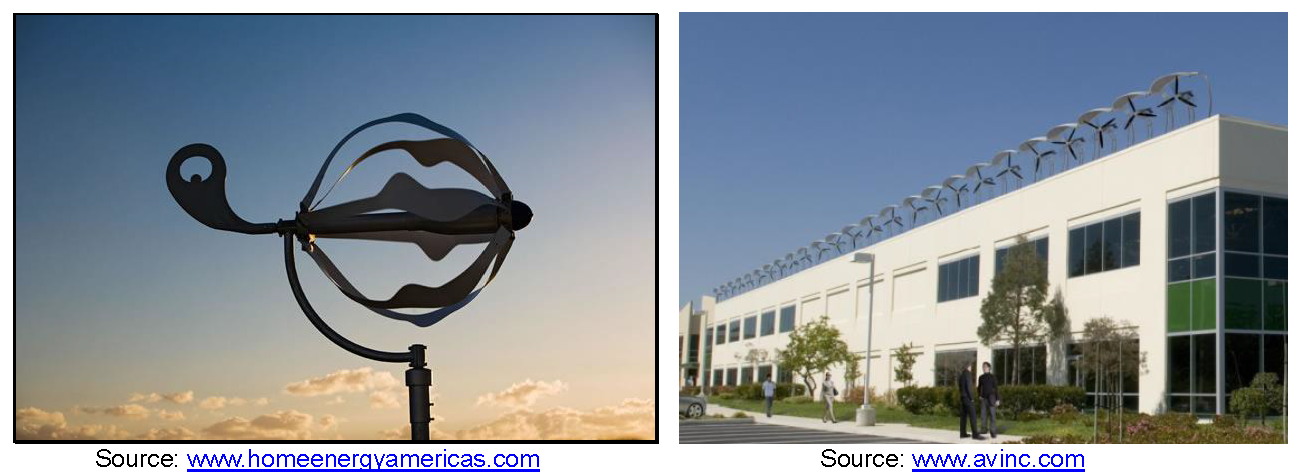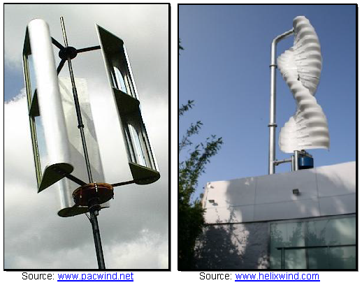 Vertical axis wind turbines (VAWTs) means the type of wind turbine that has the main rotor shaft arranged vertically; as a result this type of turbines does not have to be pointed into the wind. This type of turbine also allows the generator and gearbox to be placed near the ground, and is typically mounted either near the ground or on a building rooftop. The pictures on the top of the next page are examples of this type of wind turbine.