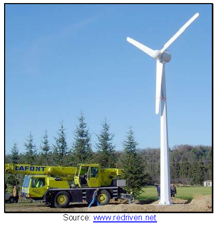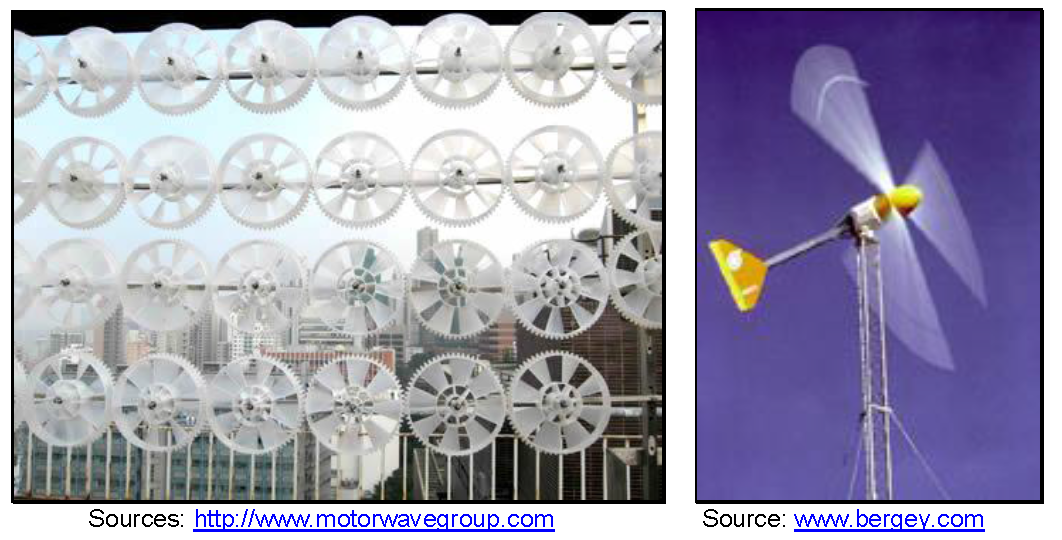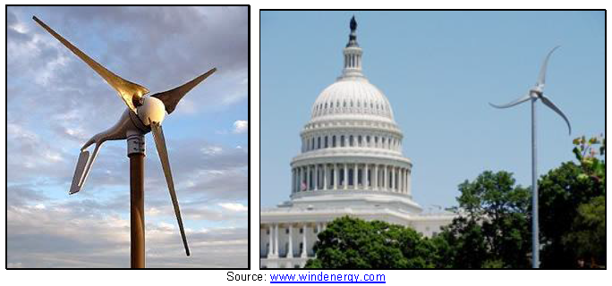 Micro wind turbine means a wind energy conversion system (WECS), consisting of a wind turbine, tower, and the associated control or conversion electronics, which has a rated capacity of ten kW or less. Examples of items they can be used to power include small appliances in boats and campers, a few lights, or portable communication systems, such as radio equipment. The images shown below and on the top of the next page are examples of micro wind turbines.