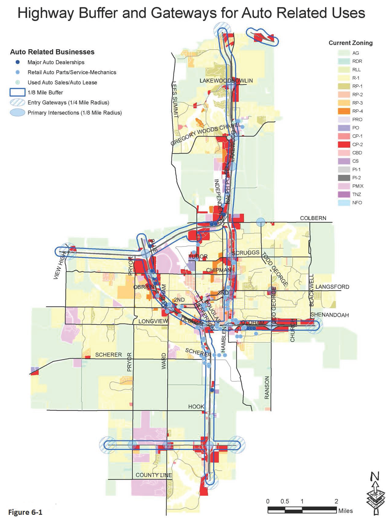 ** Major streets include highways and existing and proposed 4-lane streets.