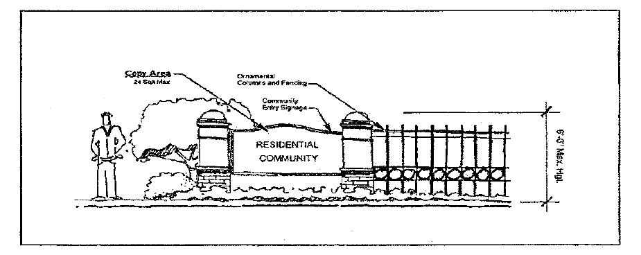 Entrance signs shall contain only the name of the subdivision, the insignia or logo of the development and shall not contain promotional or sales material.