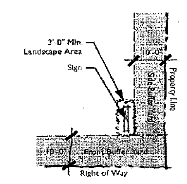 Subdivision entrance signs shall maintain a fifteen-foot setback from all property and right-of-way lines, with the exception of identification signs which are part of a masonry wall and which may be located along the property lines.