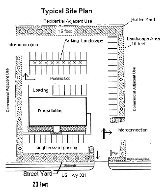 Landscaping Requirements for Street Yards of Parking Area - Street yards are defined as the area between the public right-of-way and interior area. Landscaping requirements for street yards are as follows: