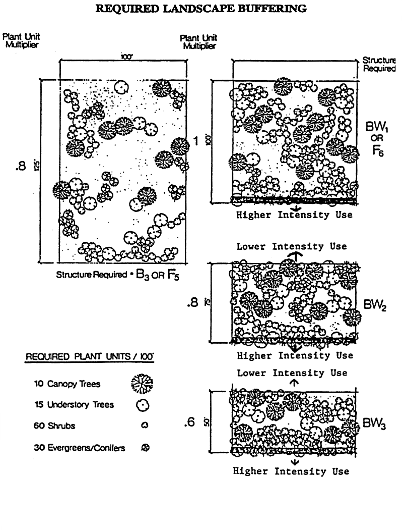 A description and buffer zone standards (section 10-7.522) is based on adjacencies and intensities.