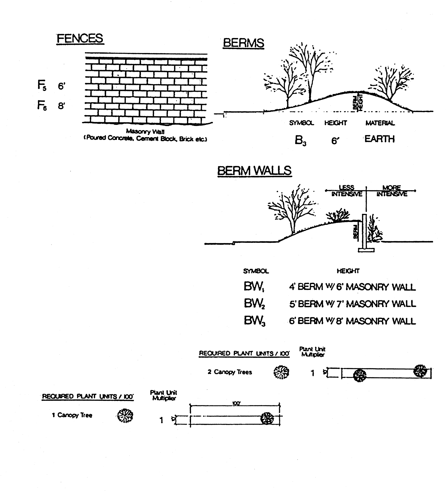 A series of schedules of land use development criteria relating use types to various factors; included are: schedule B, maximum allowable floor area standards and schedule C, minimum development standards.