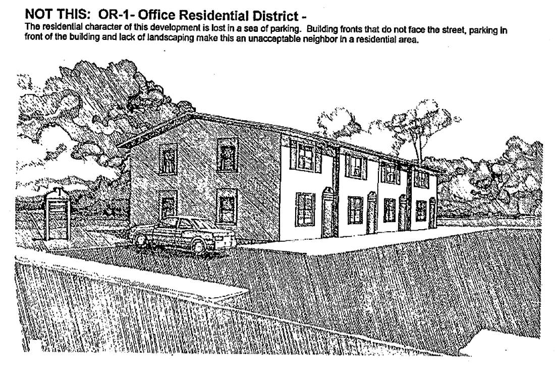 Lighting. All building lighting and parking area lighting shall be downward directional. Lighting in parking areas shall be restricted to low mounted closely spaced fixtures to minimize glare.