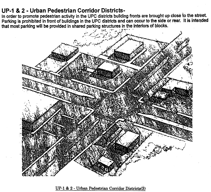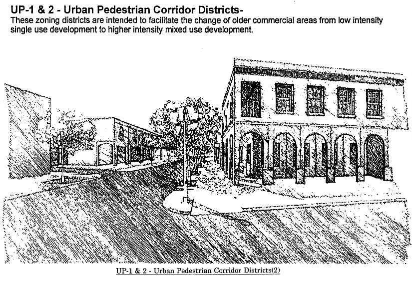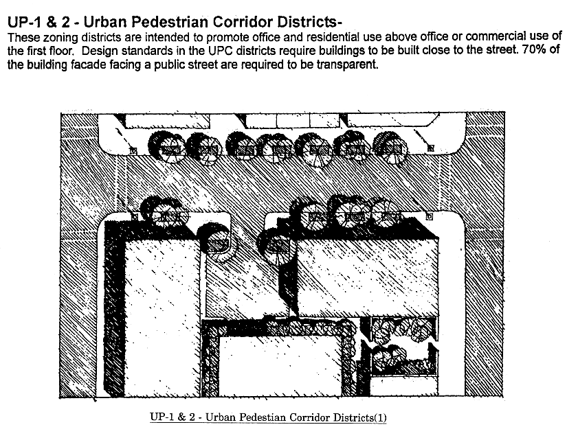 Eating and drinking establishments (SIC 581). No drive-in or drive-thru facilities are permitted within this district.
