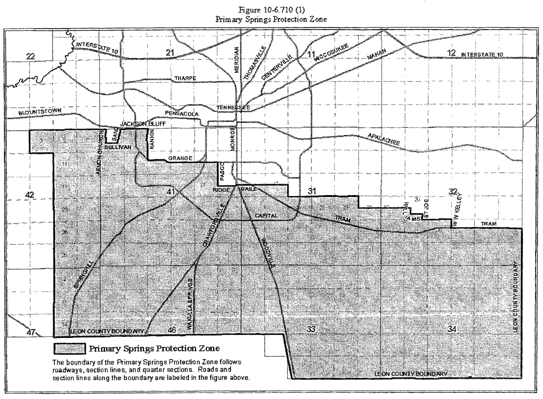 Purpose and intent. The purpose of establishing a Primary Springs Protection Zone (PSPZ) is to identify the region of the county with elevated aquifer vulnerability so that additional regulations may be applied within this zone to minimize the adverse impacts of development on groundwater recharge quality and quantity. This section is intended to implement Comprehensive Plan policy 4.2.5C. The boundary of the PSPZ is provided in the figure in section 10-6.710(1). All parcels of land in the unincorporated county that have area located inside the PSPZ are presumed to be wholly within in the area of elevated aquifer vulnerability and shall abide by the development standards provided below.