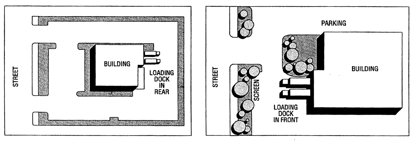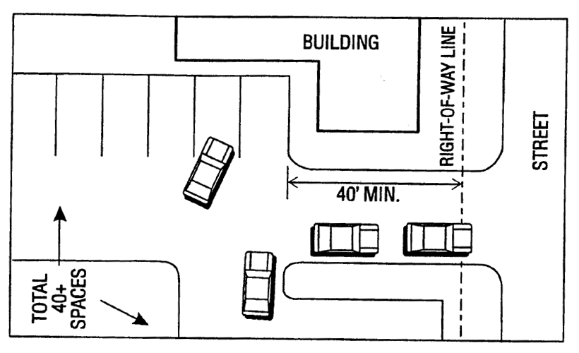 Parking in Rear. .....All off-street parking shall be provided to the rear of the principal building(s) unless the Planning Board determines that, due to lot size, shape or topographic features, some or all parking cannot be placed to the rear.