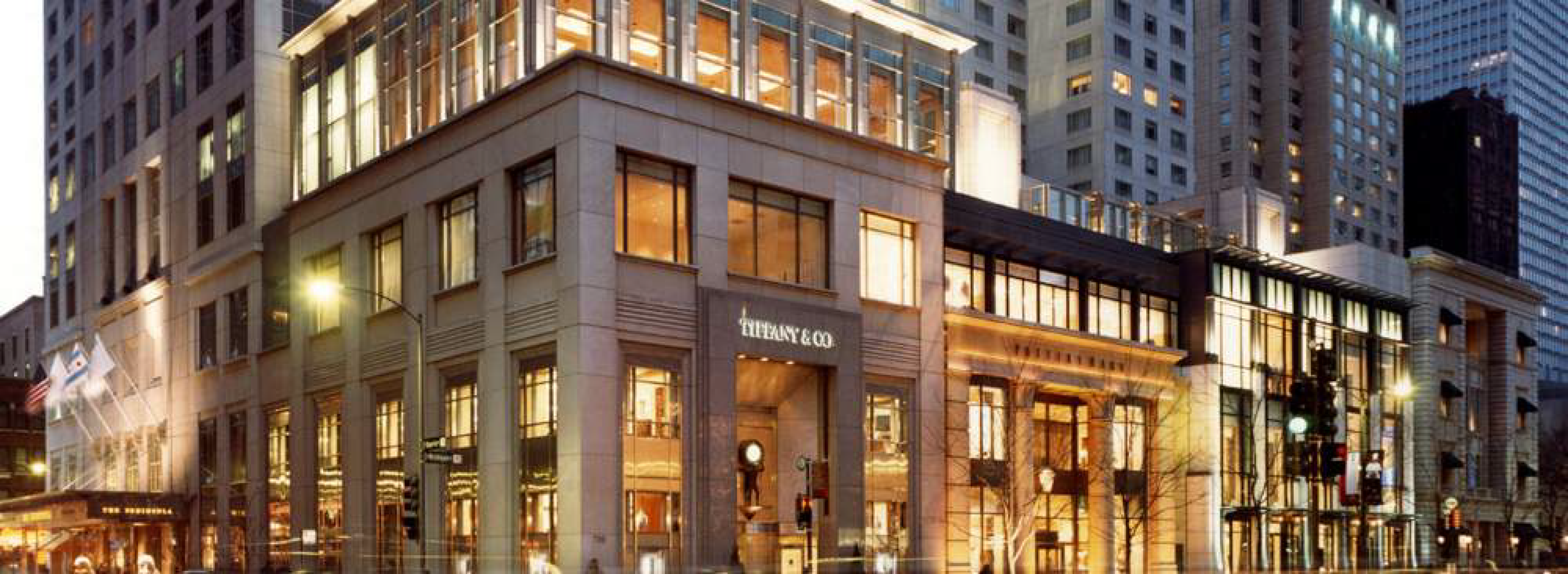 Medium to large, horizontally oriented rectangular signs attached flat against the building, above and/or below the awnings, printed on one side only.