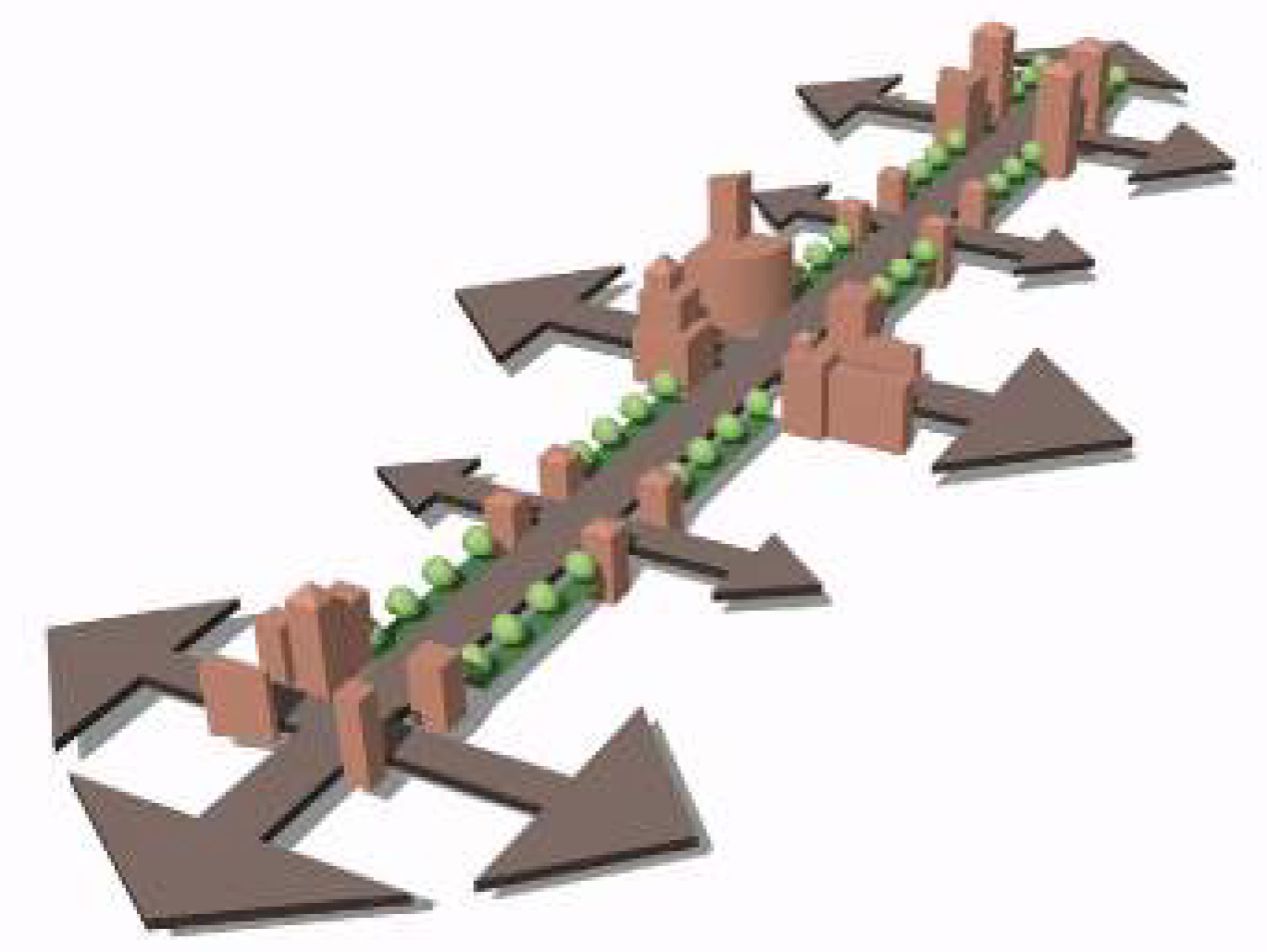 To incorporate nodal development, landmarks and gateway treatments should be integrated with intersection design at identified nodes.