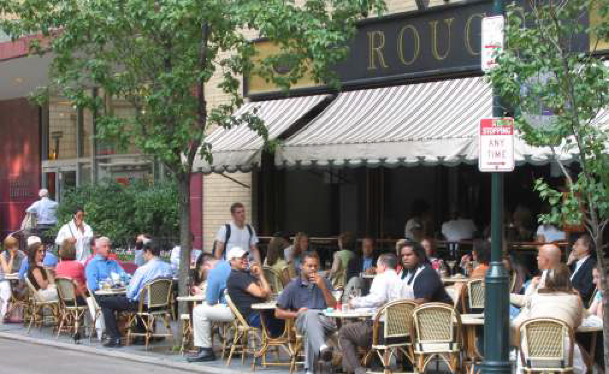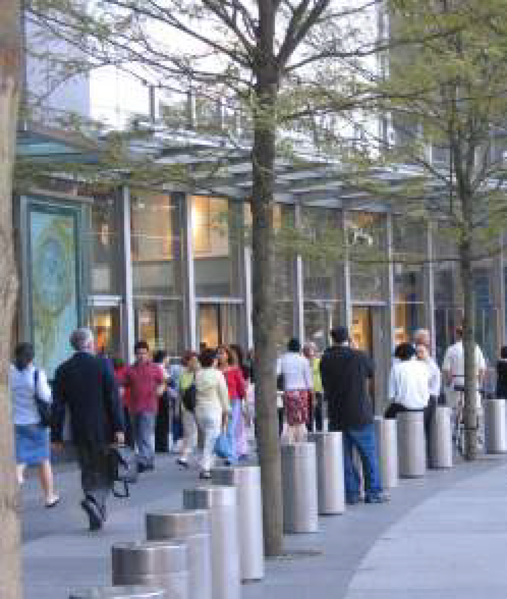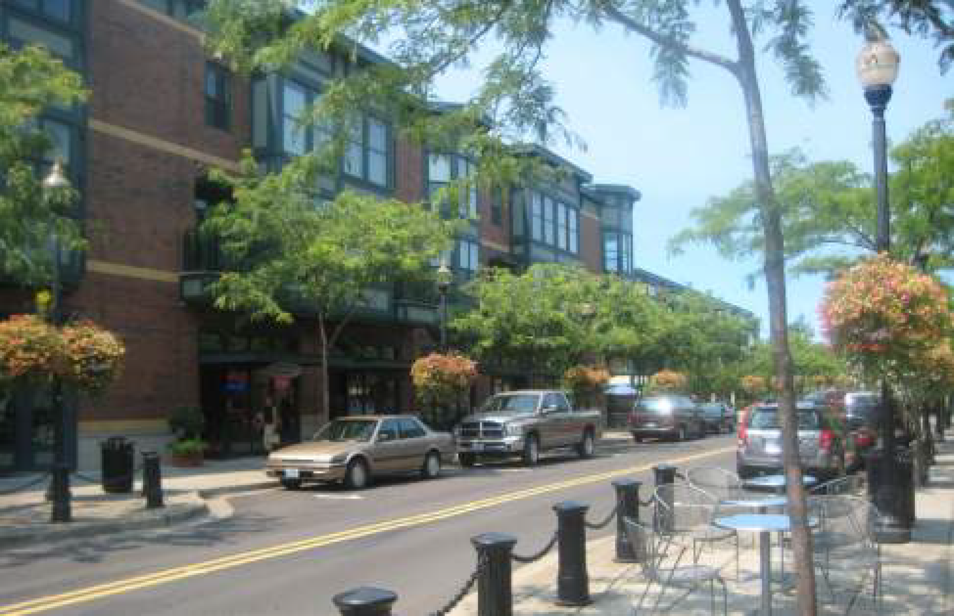 To provide amenities for pedestrians, sidewalks should incorporate street trees, benches, kiosks and plazas.
