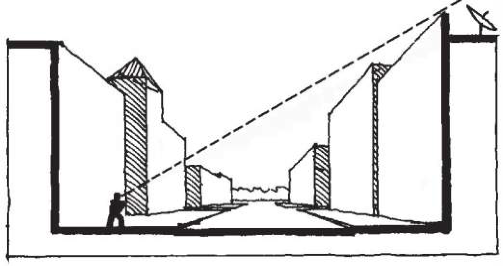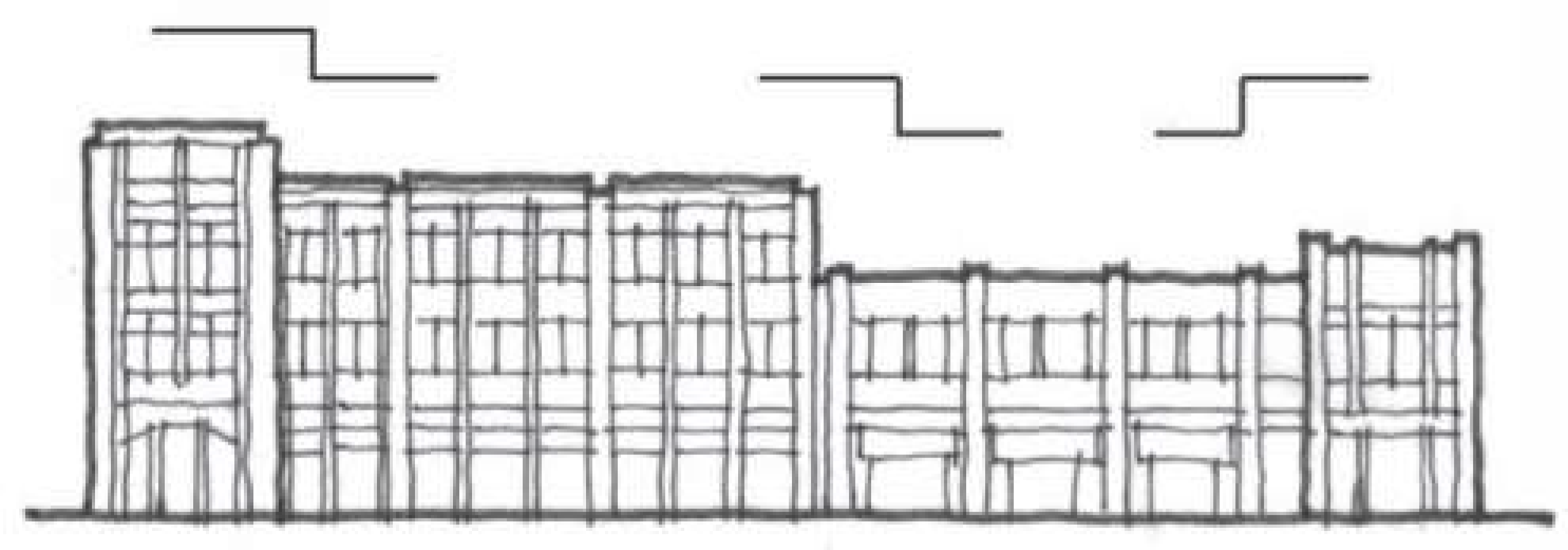 To reduce a canyon effect in the corridor, vertical surfaces of walls should not exceed twenty feet (20') without a twelve-inch (12") minimum horizontal break.